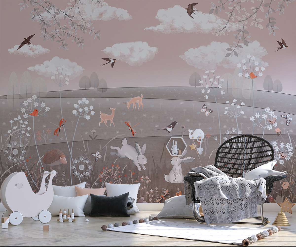 Tapetai pieva su gyvūnais